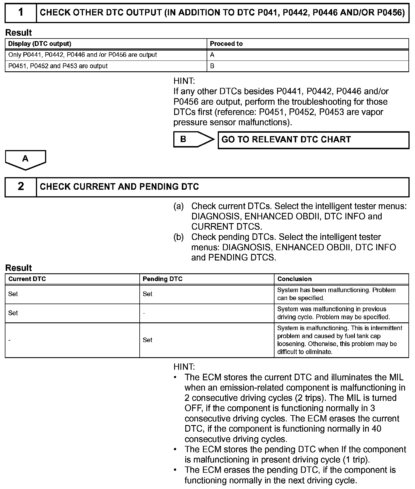 HINT: Read freeze frame data. The ECM records vehicle and driving condition information as freeze frame data the moment a DTC is stored. When troubleshooting, freeze frame data can help determine if the vehicle was running or stopped, if the engine was warmed up or not, if the air-fuel ratio was lean or rich, and other data from the time the malfunction occurred.