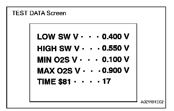 If the TEST DATA value appearing on the scan tool is out of the standard value, the O2S is malfunctioning. If it is within the standard value, the O2S is functioning normally. However, if the value is on the borderline of the standard value, the O2S may malfunction very soon.