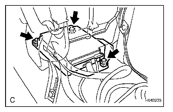 c. Temporarily install the center airbag sensor assembly with the 3 bolts.
