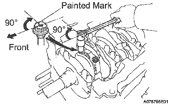 Mark the front side of each connecting cap bolt with paint.