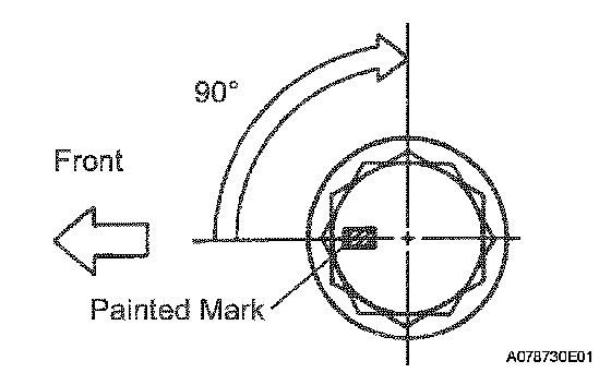 Mark the front side of each cylinder head bolt head with paint as shown in the illustration.