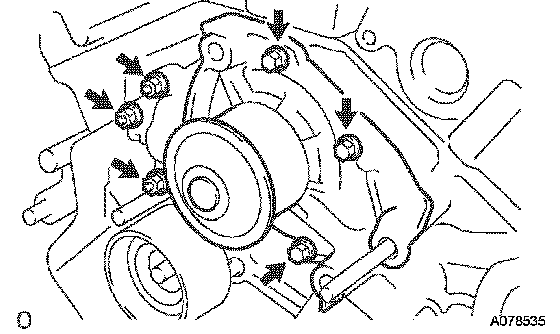 Install anew gasket and the water pump with the 3 bolts and 3 nuts.