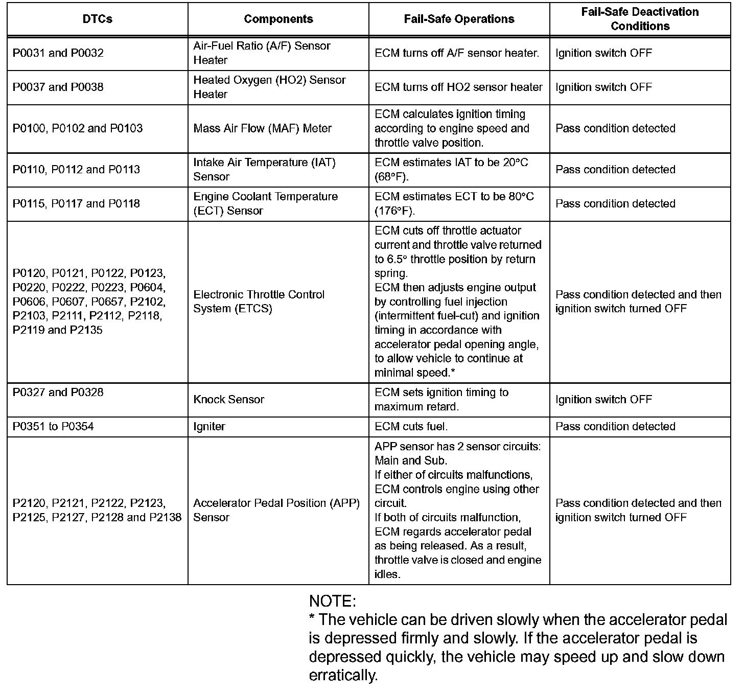 If any of the given DTCs are set, the ECM enters fail-safe mode to allow the vehicle to be driven temporarily.