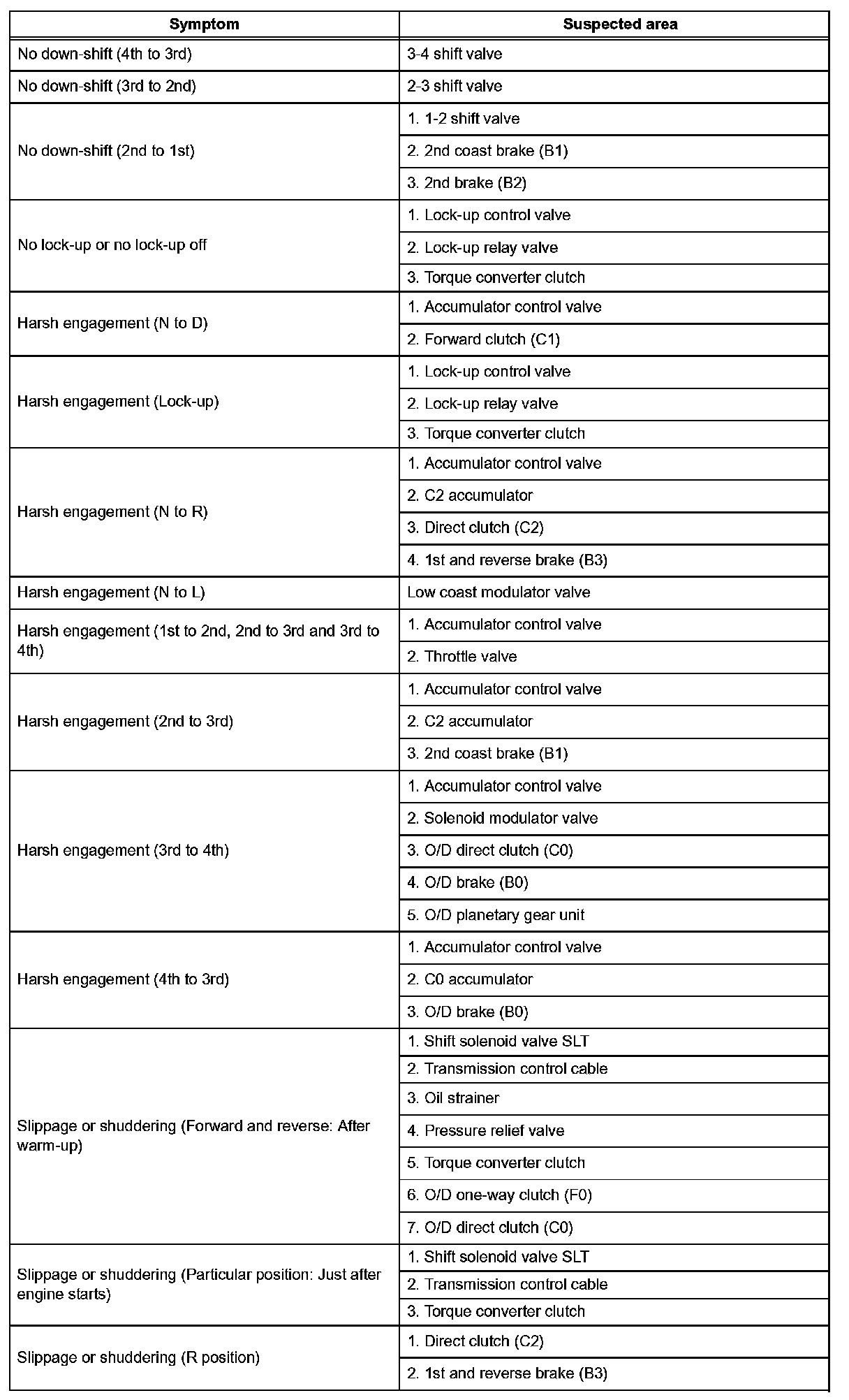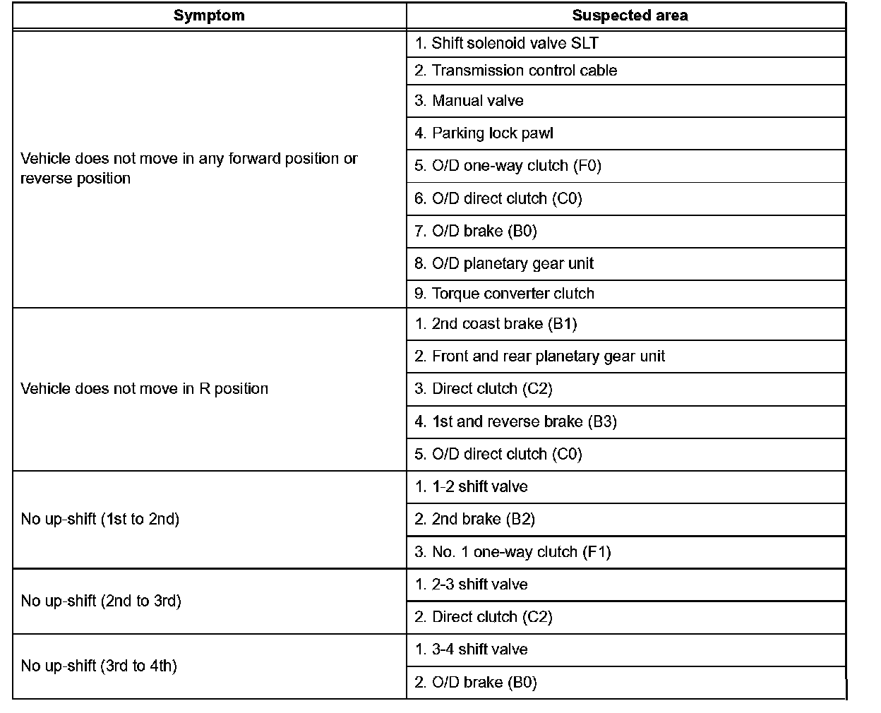 PROBLEM SYMPTOMS TABLEHINT: