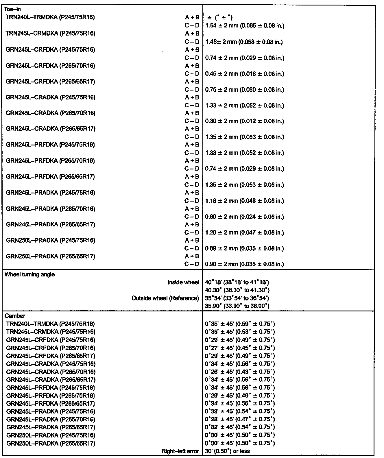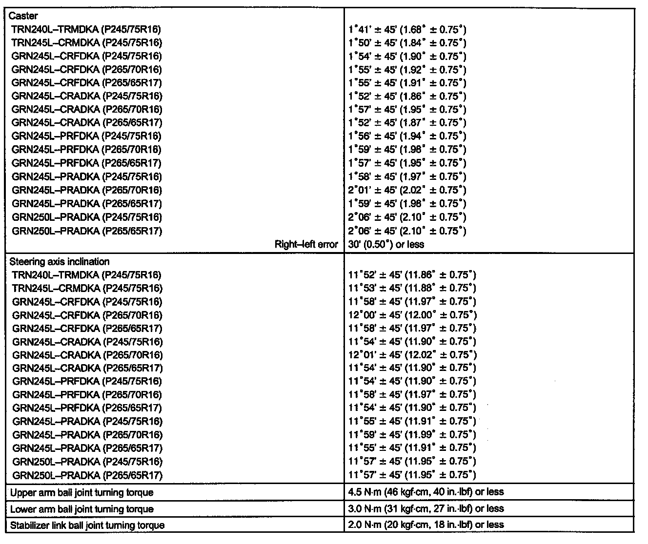 Alignment: Specifications