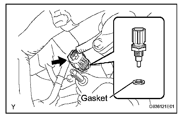 a. Using a 19 mm deep socket wrench, install the water temperature sensor with a new gasket.