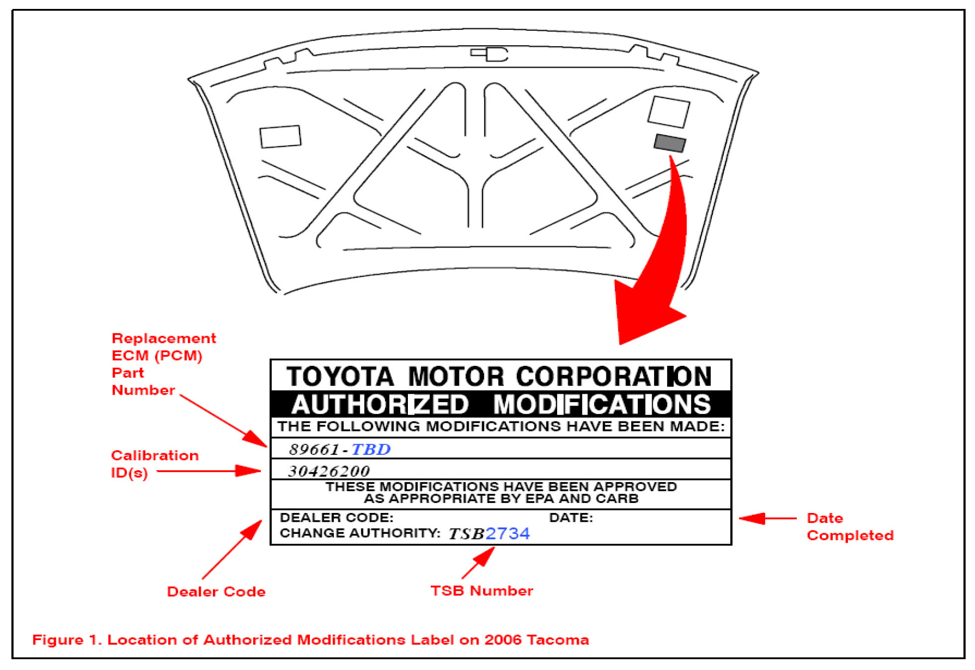 1. Check for the Authorized Modifications Label affixed to the vehicle in the location shown in Figure 1.