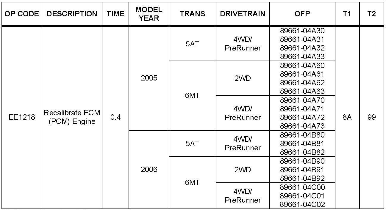Some 2005 - 2011 model year Tacoma vehicles with a 1GR-FE engine may exhibit a MIL "ON" condition with Diagnostic Trouble Code (DTC) P0456 - Evaporative Emission Control System Leak Detected (Very Small Leak) - when no leak is present. The Engine Control Module/ECM (SAE term Powertrain Control Module/PCM) logic has been modified to reduce the possibility of this condition occurring. Use the following repair procedure to address this condition