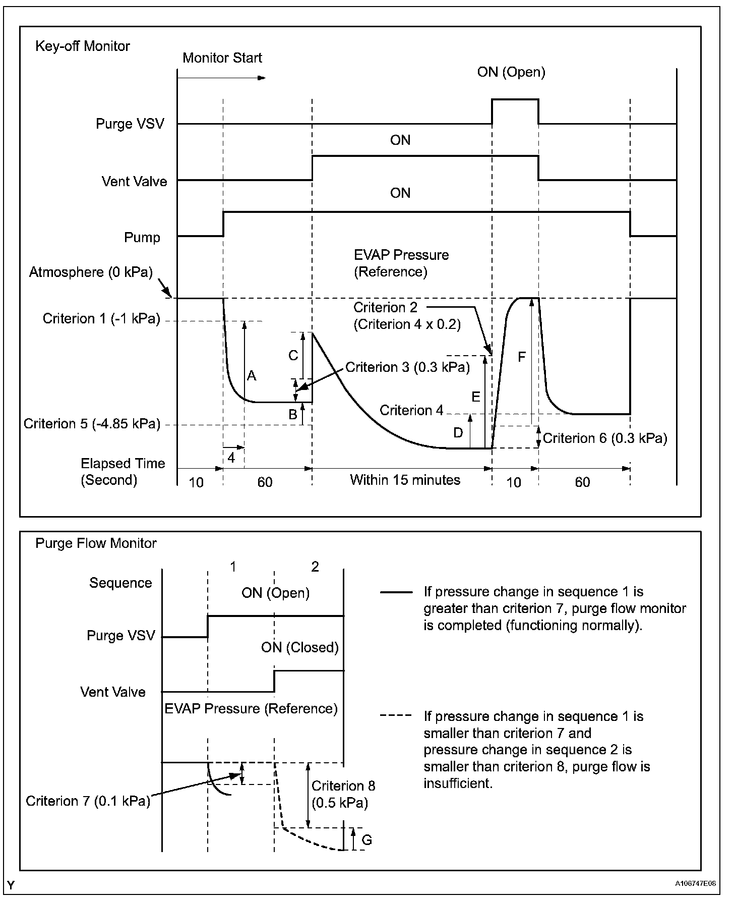 The purge flow monitor consists of the two monitors. The 1st monitor is always conducted every time and the 2nd monitor is activated if necessary.