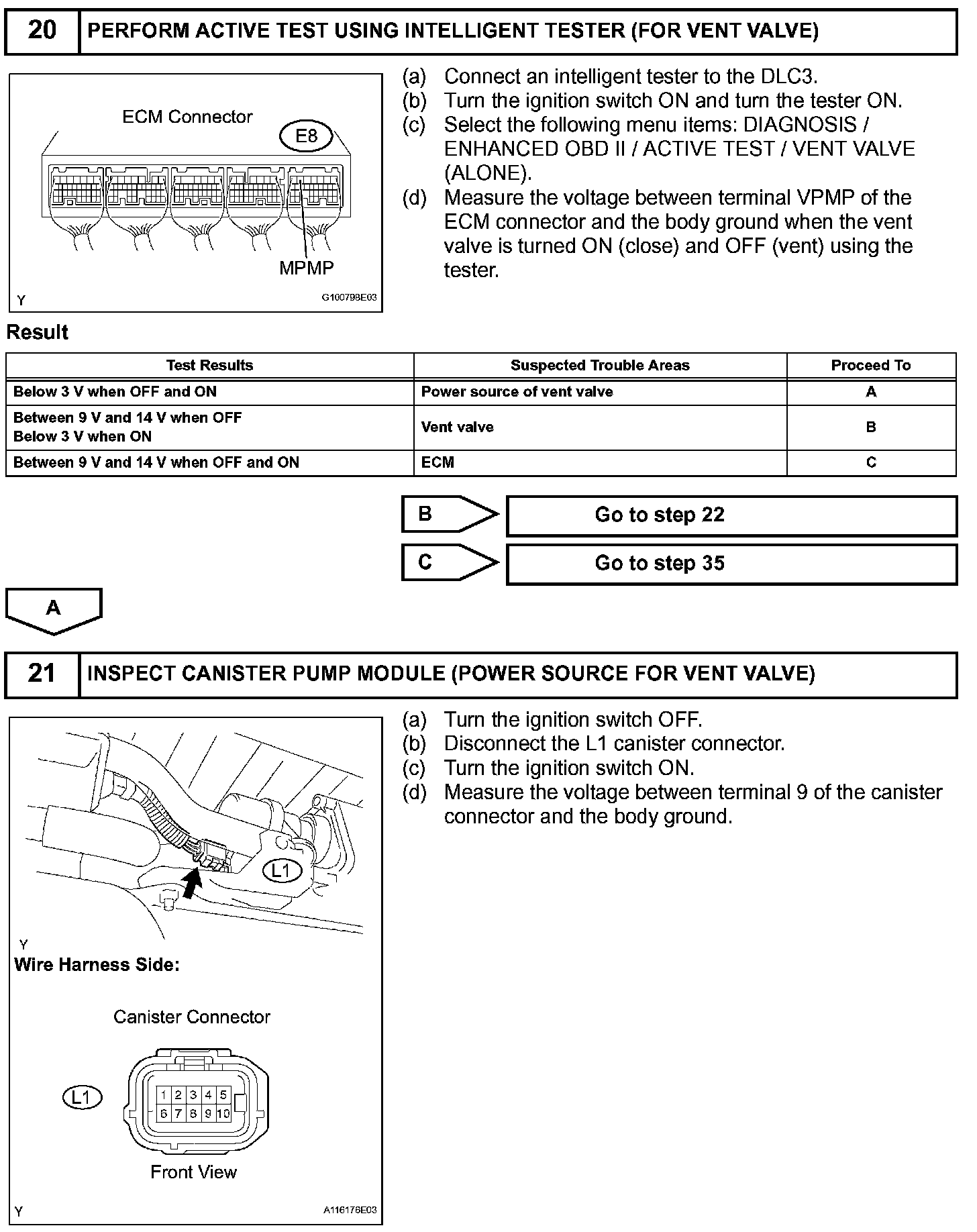 NOTE: An intelligent tester is required to conduct the following diagnostic troubleshooting procedure.