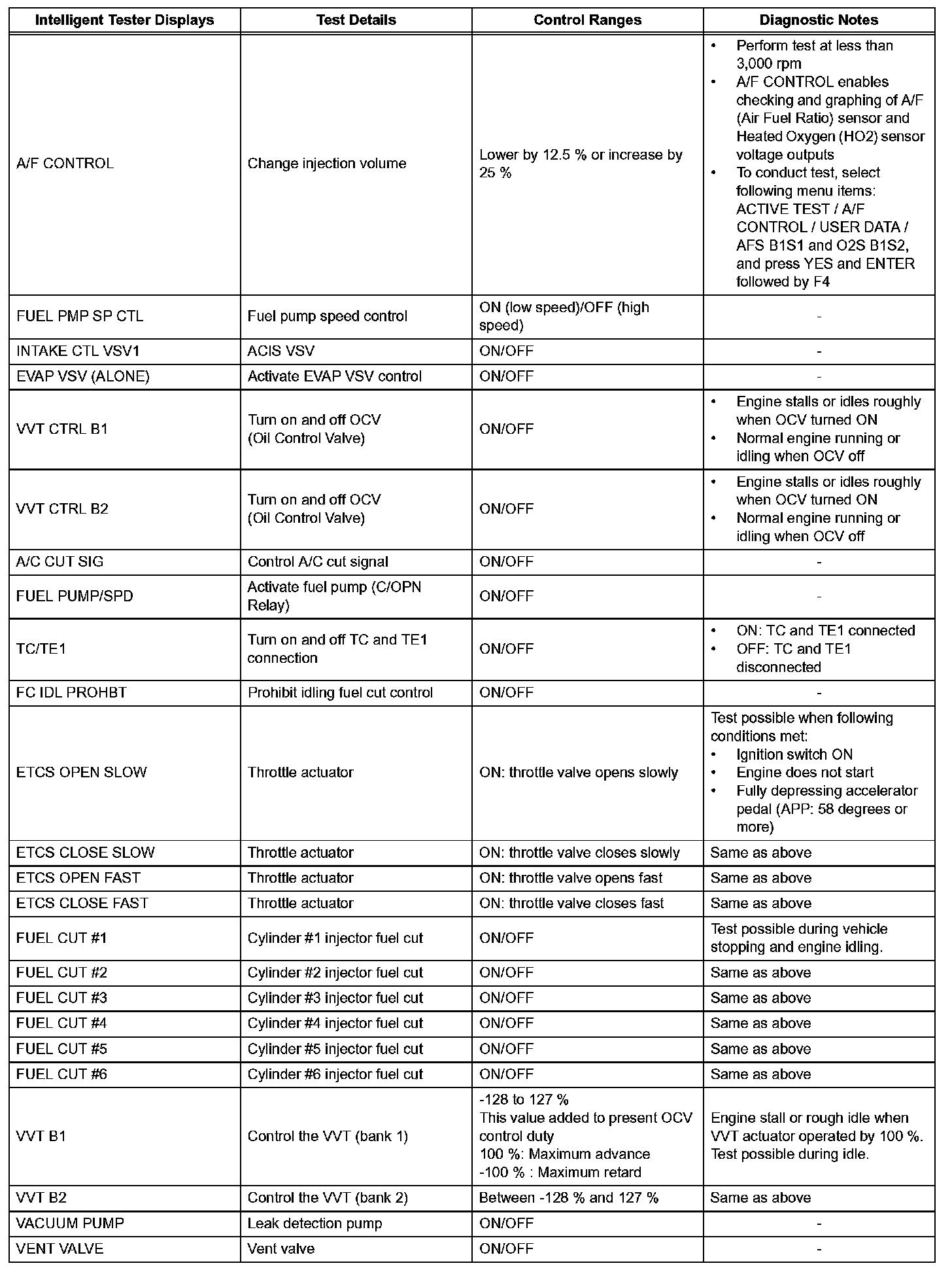 ACTIVE TESTHINT: Performing an ACTIVE TEST enables components including the relays, VSV (Vacuum Switching Valve), and actuators, to be operated without removing any parts. The ACTIVE TEST can be performed with an intelligent tester. Performing an ACTIVE TEST as the first step of troubleshooting is one method of shortening diagnostic time.