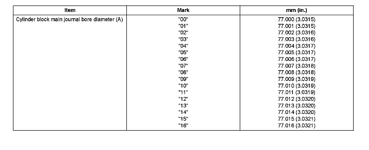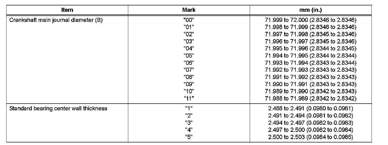 Crankshaft Main Bearing Size Codes
