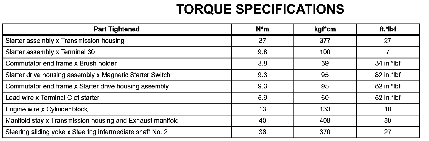 Starting-Torque Specifications: