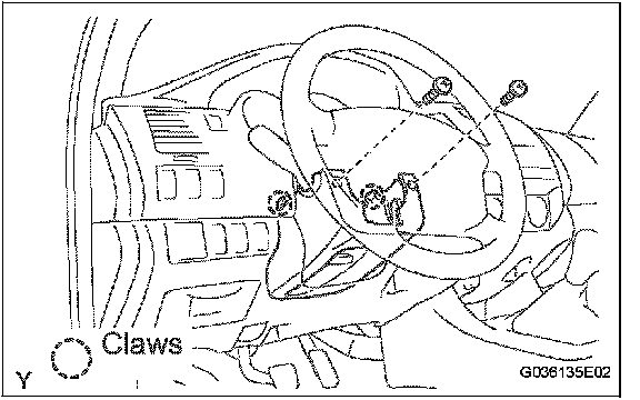 b. Disengage the 2 claws and remove the steering column cover LWR.