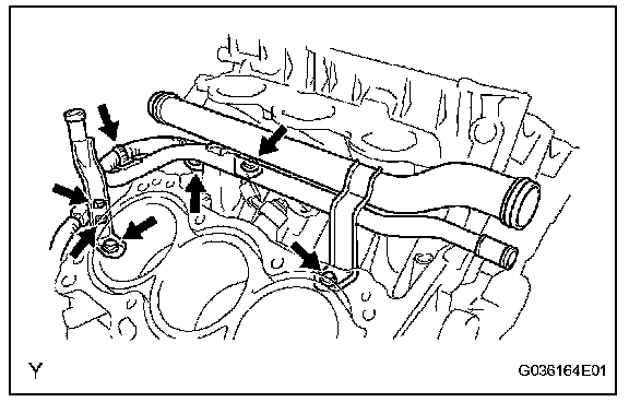 b. Remove the 3 bolts and water outlet pipe.