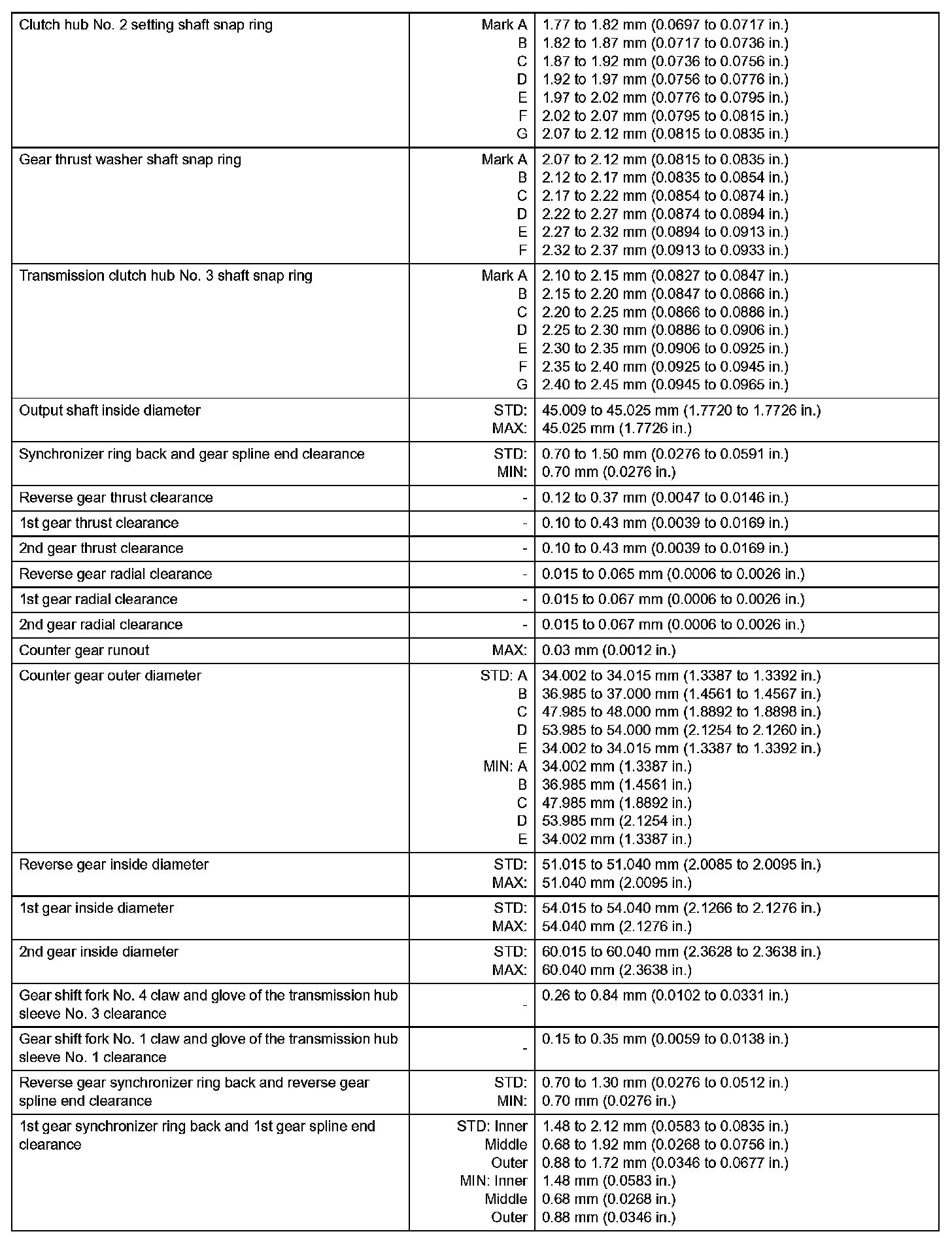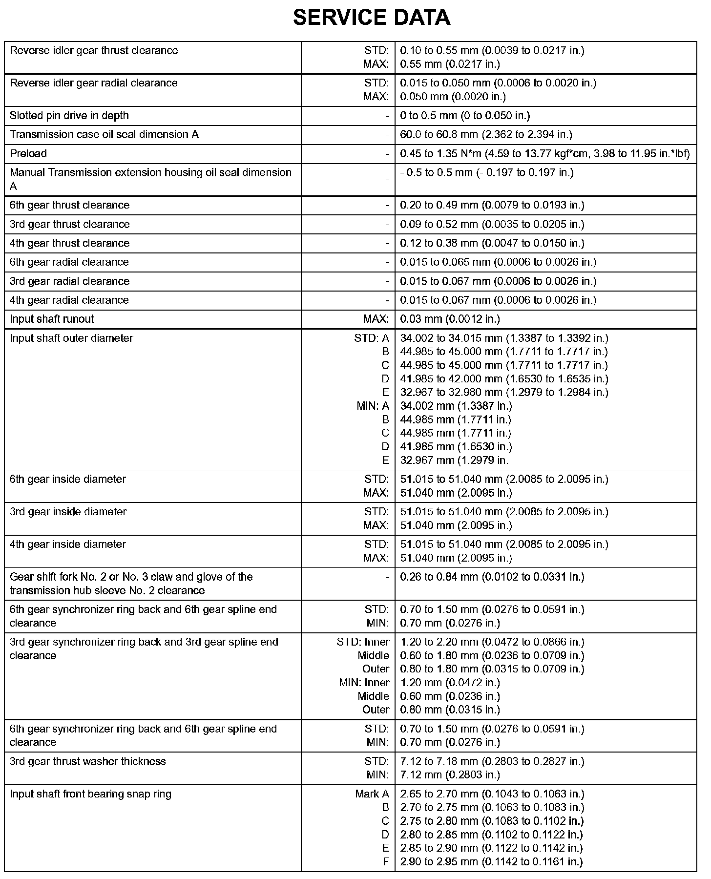 Manual Transmission-Service Data (Part 2):