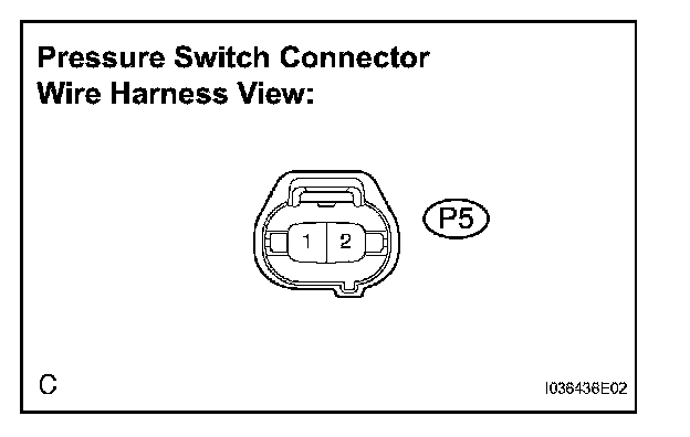 2. Connect terminals 1 and 2 of the pressure switch connector on the vehicle wire harness side using a service wire.