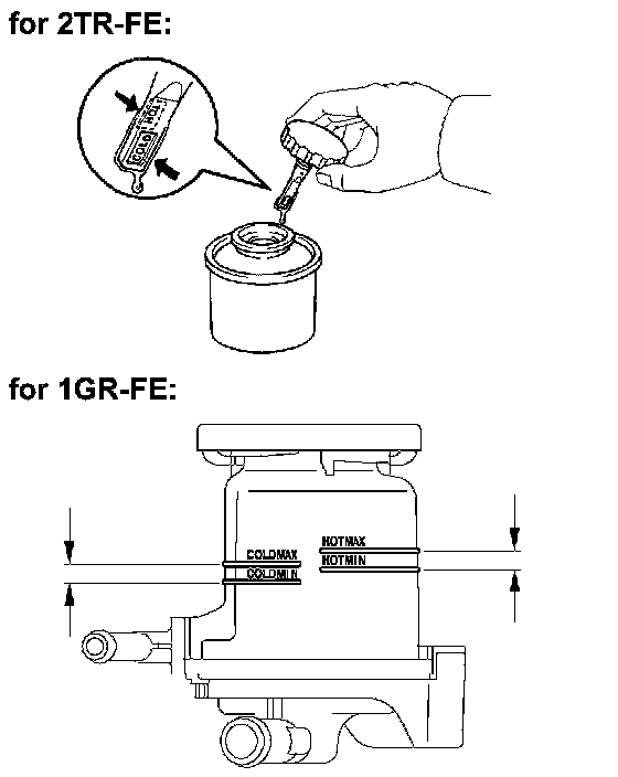 HINT: Check that the fluid level is within the HOT level range in the reservoir tank. If the fluid is cold, check that it is within the COLD level range.
