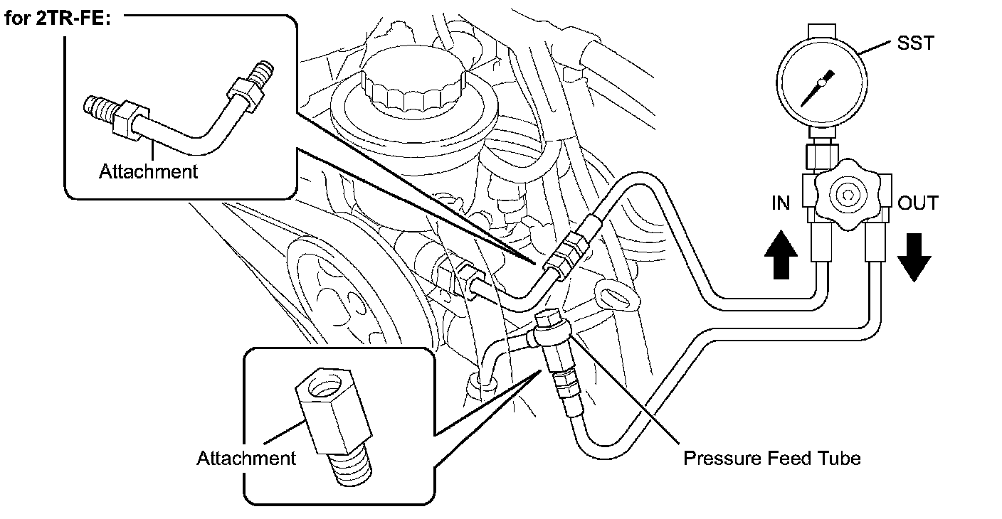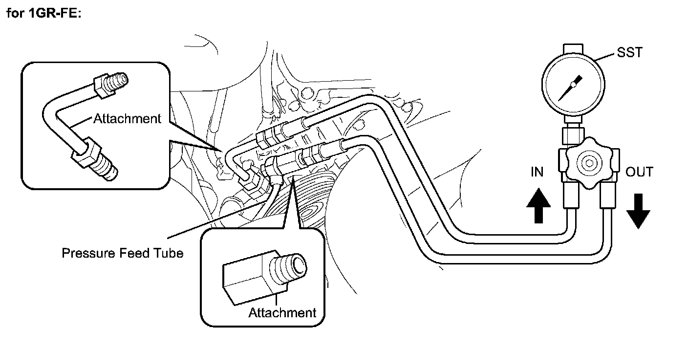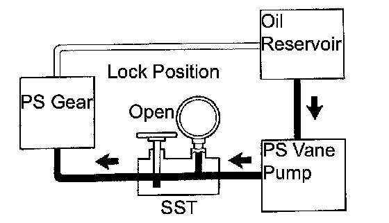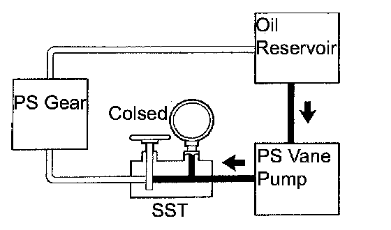 g. With the engine idling, close the valve of SST and check the reading on SST