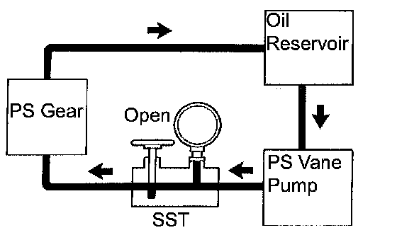 j. With the engine idling and valve fully open, turn the steering wheel to the full lock position.