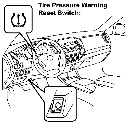 b. Press the tire pressure warning reset switch for 3 seconds or more with the ignition switch in the ON position.