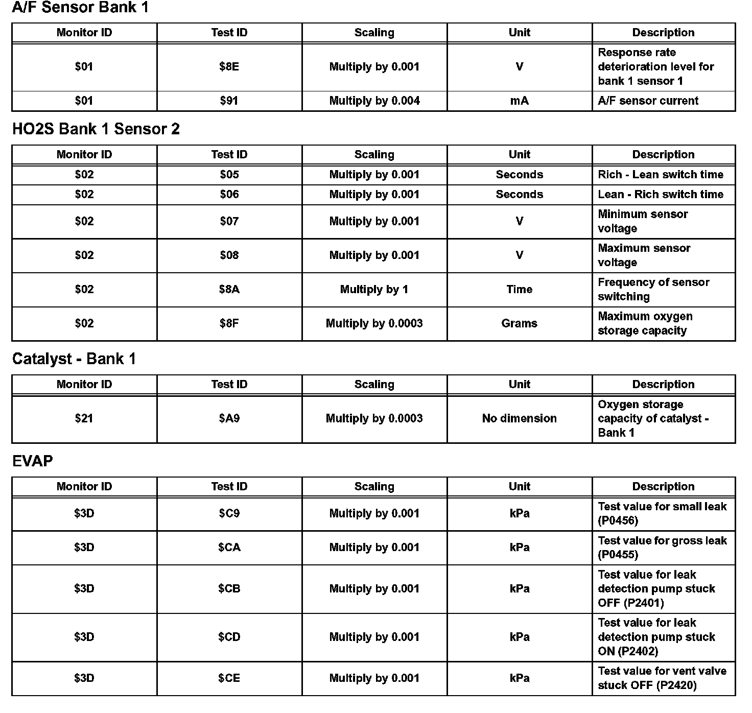If you use a generic scan tool, multiply the test value by the scaling value listed.