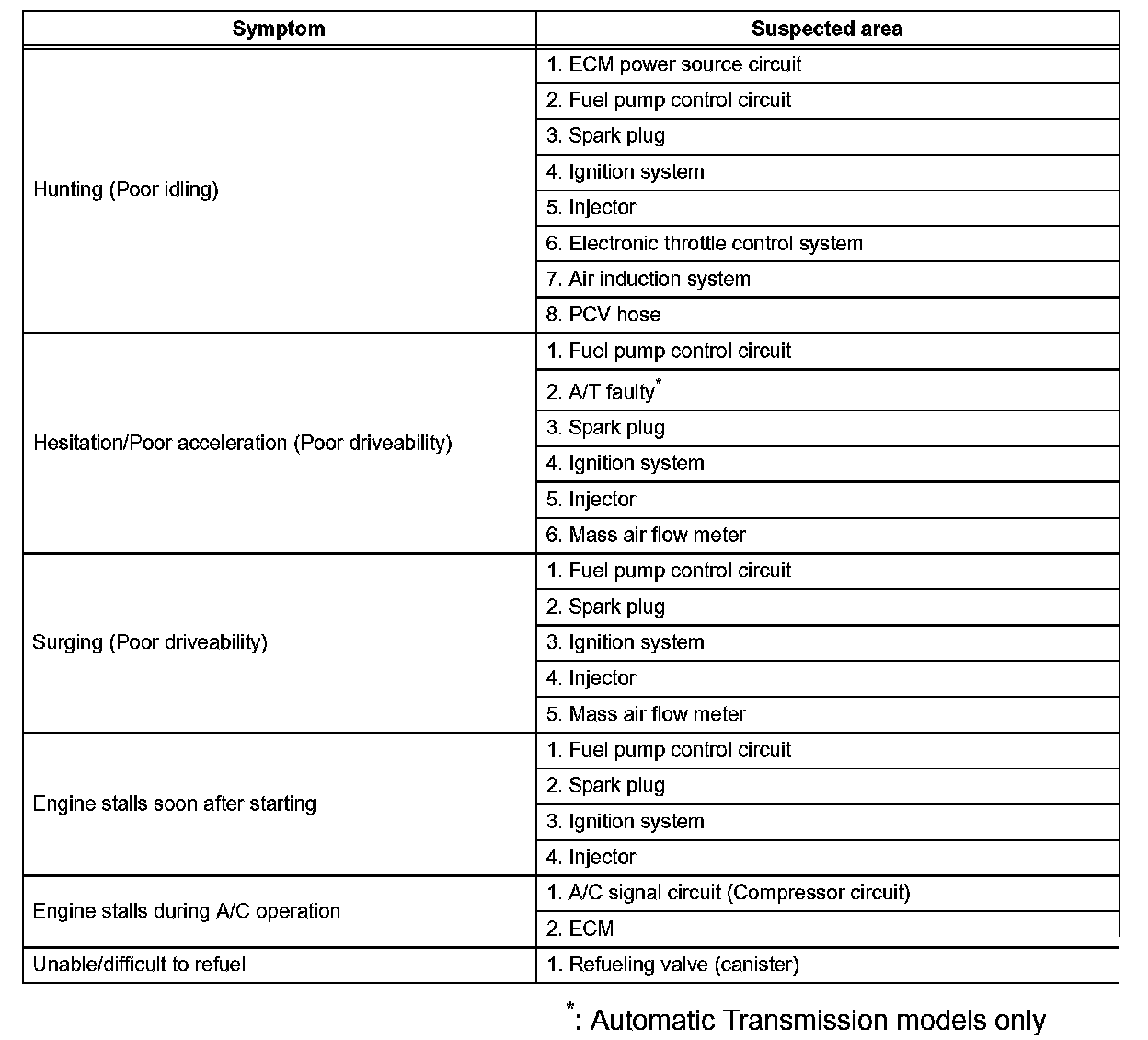 PROBLEM SYMPTOMS TABLEProblem Symptoms Table (Part 1):