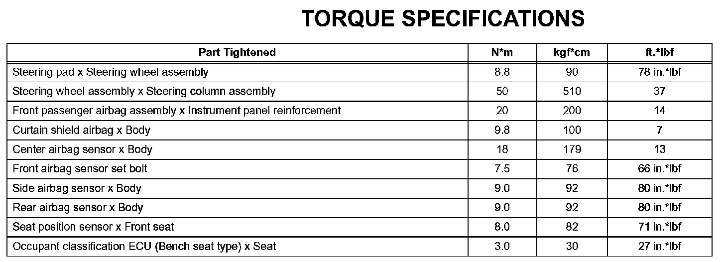 Supplemental Restraint System-Torque Specifications:
