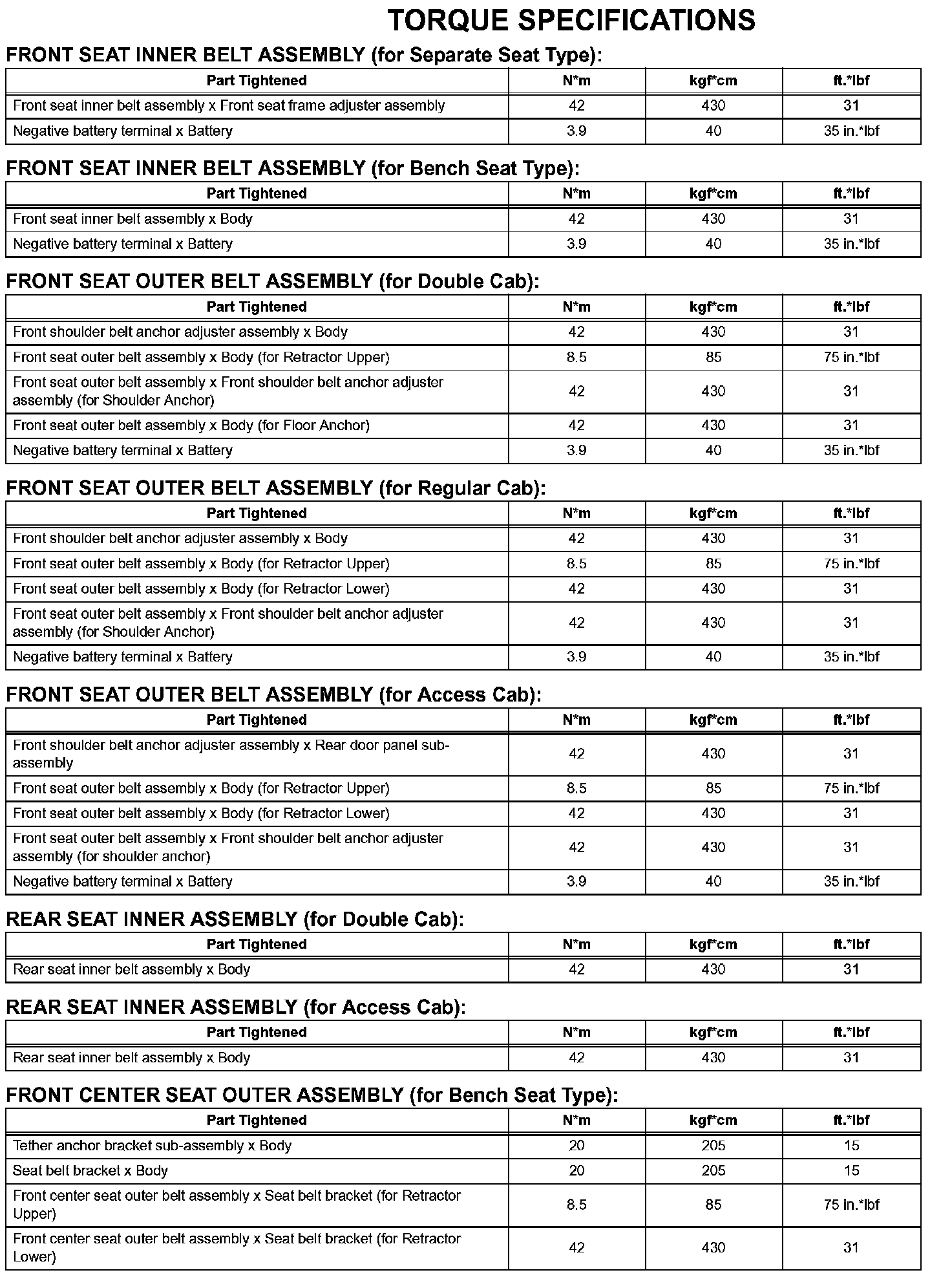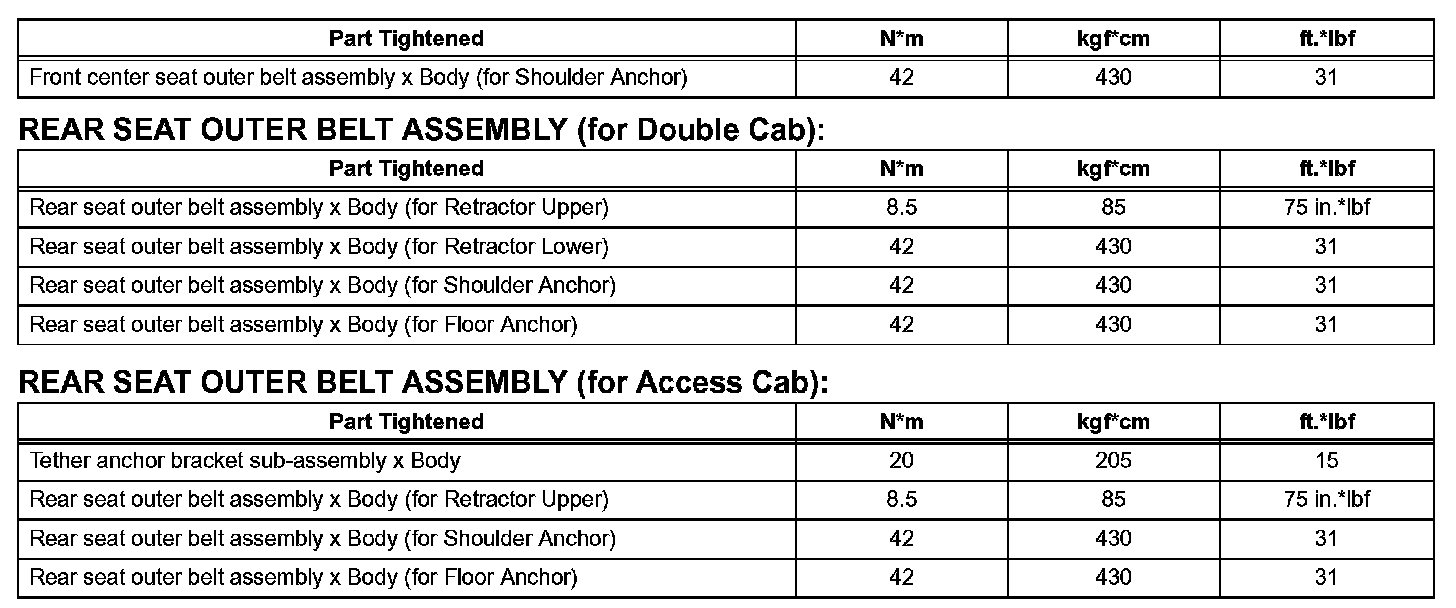 Seat Belt-Torque Specifications (Part 1):