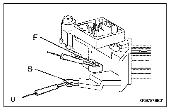 a. Using an ohmmeter, check the continuity between terminals F and B.