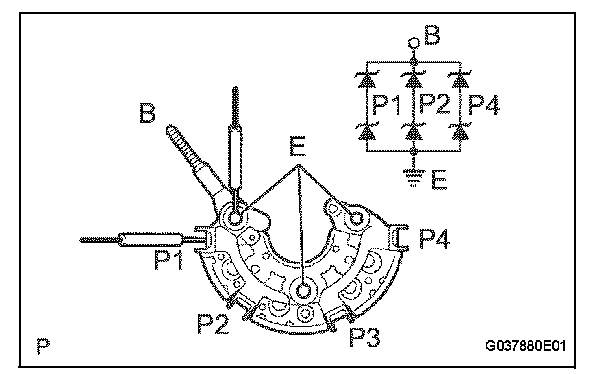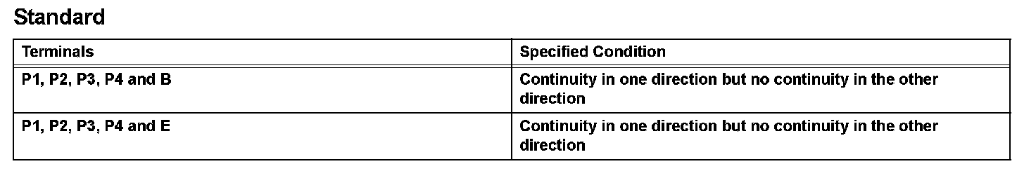 a. Using an ohmmeter, check the continuity between terminals P1, P2, P3, P4 and B, and between P1, P2, P3, P4 and E.