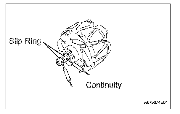 1. Using an ohmmeter, check that there is no continuity between the slip ring and generator rotor assembly.