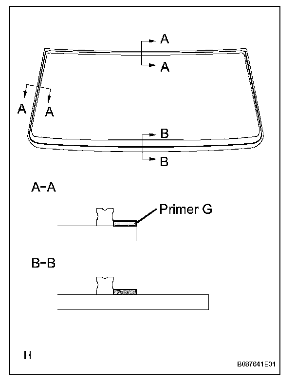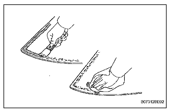 a. Using a brush or sponge, apply Primer G to the edge of the windshield glass and contact surface.