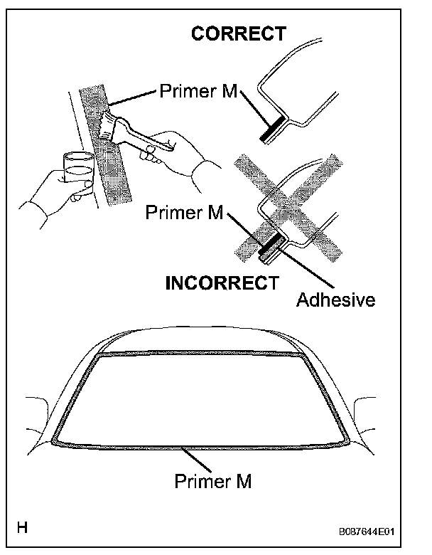 c. Using a brush or sponge, apply Primer G to the edge of the windshield glass and contact surface.
