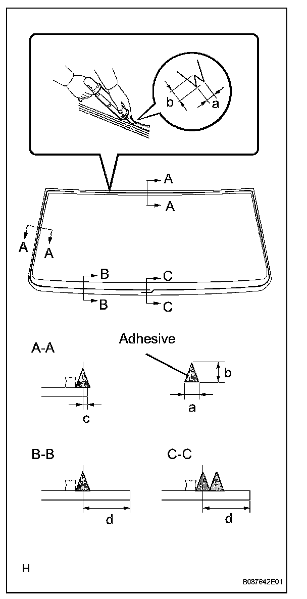 3. Apply adhesive to the windshield glass as shown in the illustration.