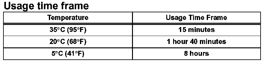 HINT: After cutting off the tip, use all adhesive within the times indicated in the table.