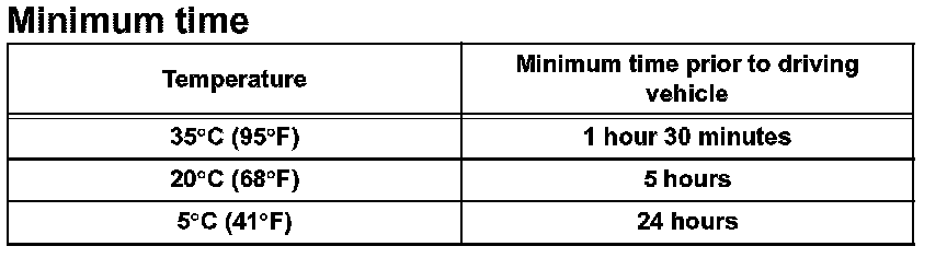 NOTE: Do not drive vehicle for the amount of time indicated in the table.