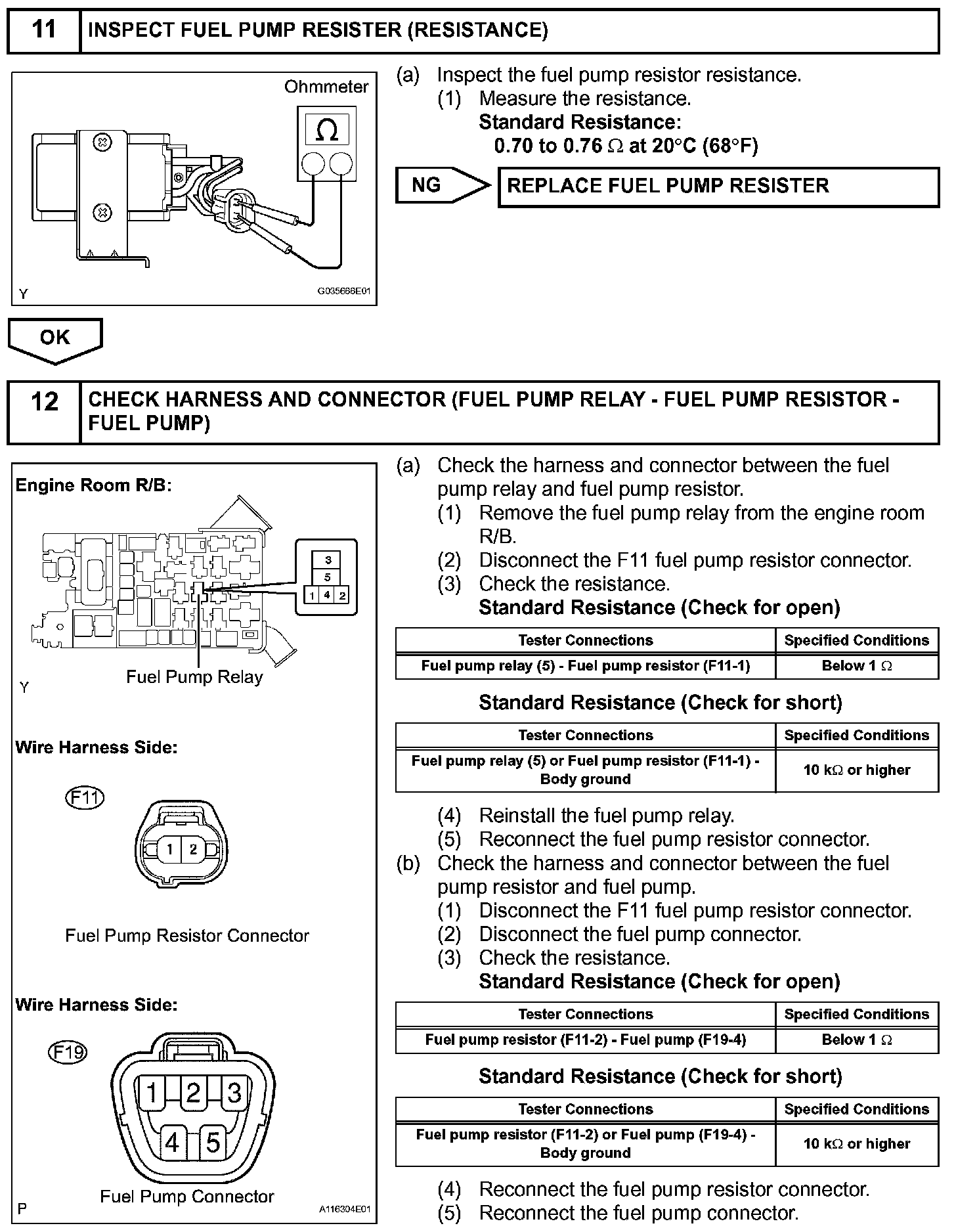 During idling or under light loads, Tr2 goes ON, and then power is supplied to the fuel pump via the fuel pump resistor. The fuel pump operates at low speed.