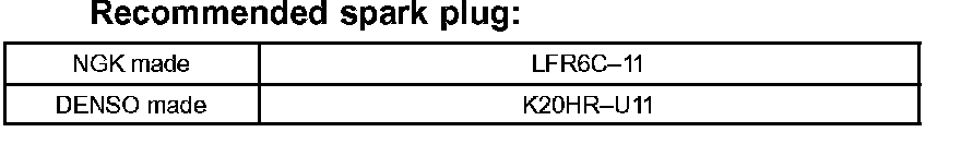 Electrode gap: 1.0 to 1.1 mm (0.039 to 0.043 in.)