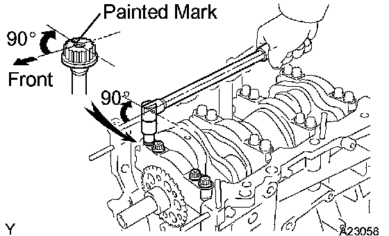 Retighten the bearing cap bolts 90° in the sequence as shown in the illustration.