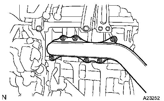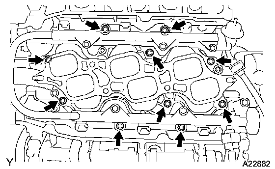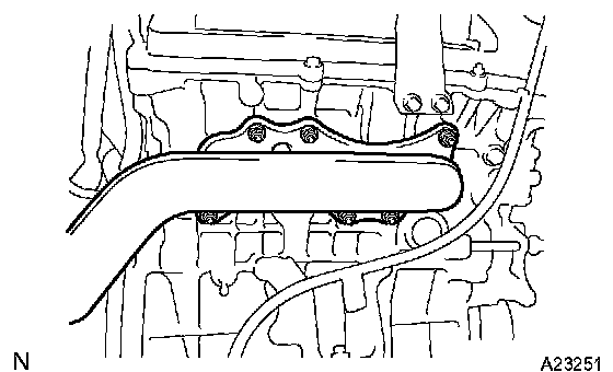 Install the exhaust manifold with the 6 nuts. Tighten the nuts uniformly in several steps.