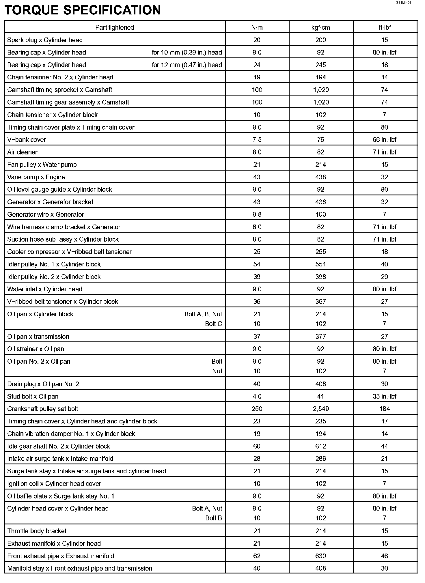 Engine Mechanical-Torque Specification (Part 1):