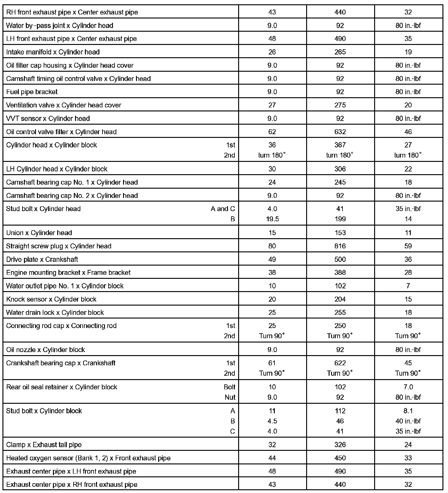Engine Tightening Specifications
