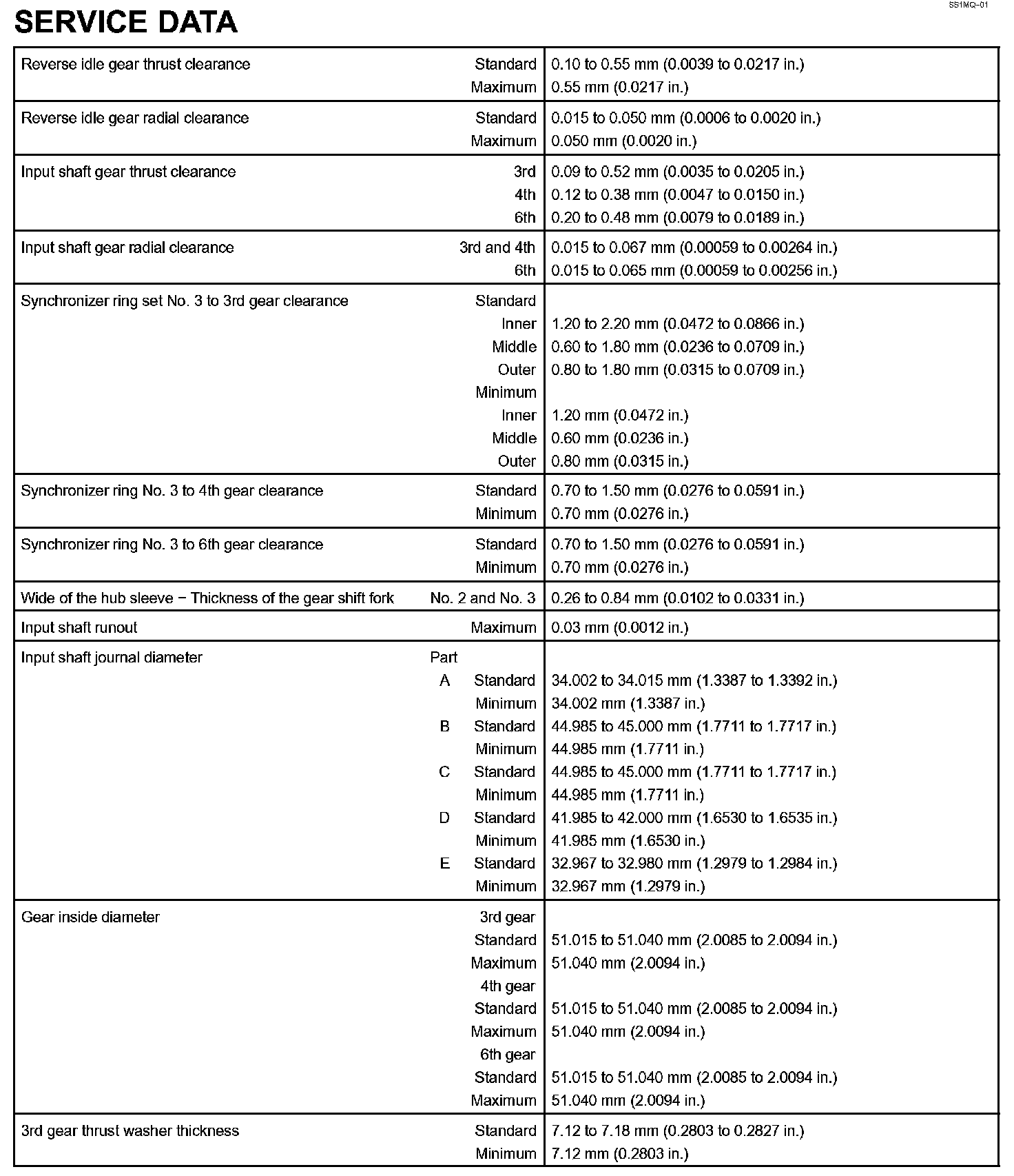 Manual Transmission-Service Data (Part 3):