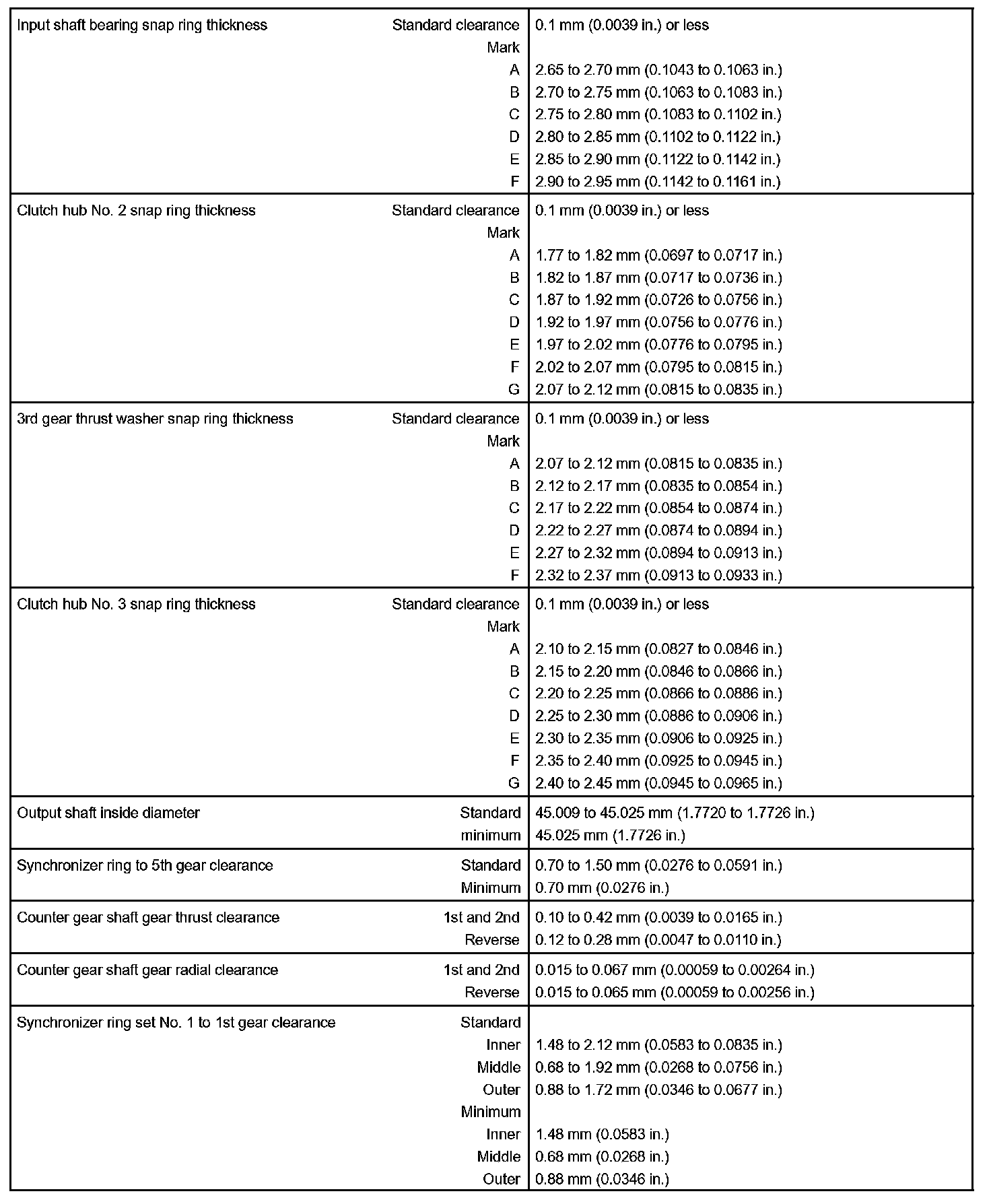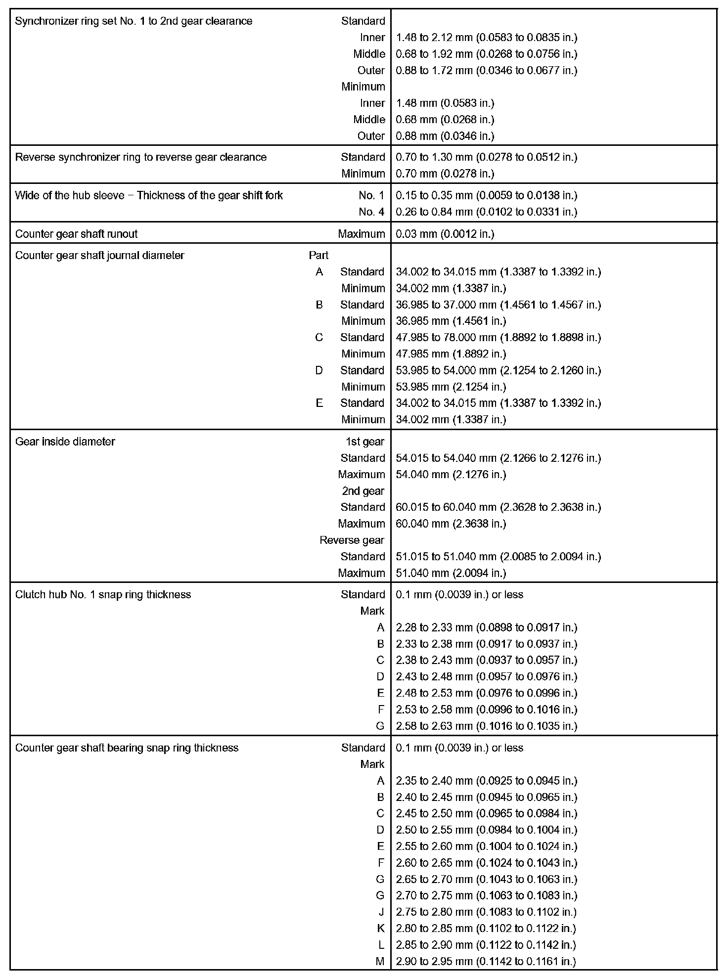 Manual Transmission-Service Data (Part 4):
