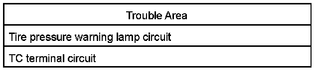 - If the tire pressure warning lamp does not blink any DTCs or the normal system code, inspect the tire pressure warning lamp circuit or TC terminal circuit.