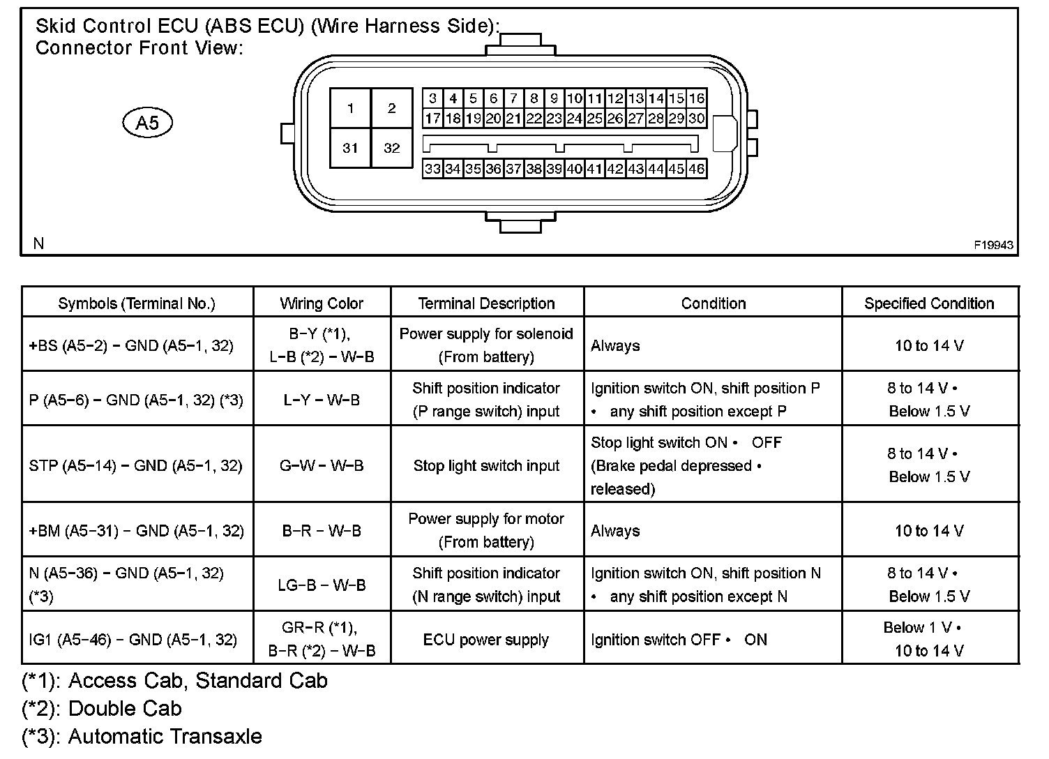 HINT: Voltage can not be measured with the connector connected to the skid control ECU (ABS ECU) as the connector is water resistance.
