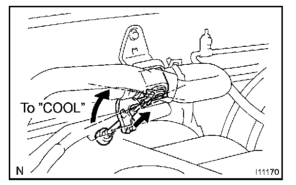 Pull the air inlet control link to the "COOL" position, connect the control cable and lock the clamp.