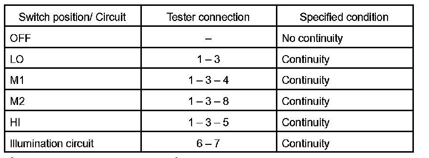 INSPECTION1. INSPECT BLOWER SPEED CONTROL SWITCH CONTINUITY