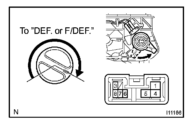 a. Check the continuity exists between terminals 1 and 3 of the blower switch connector when turning the mode selector to the DEF. position and F/DEF. position.